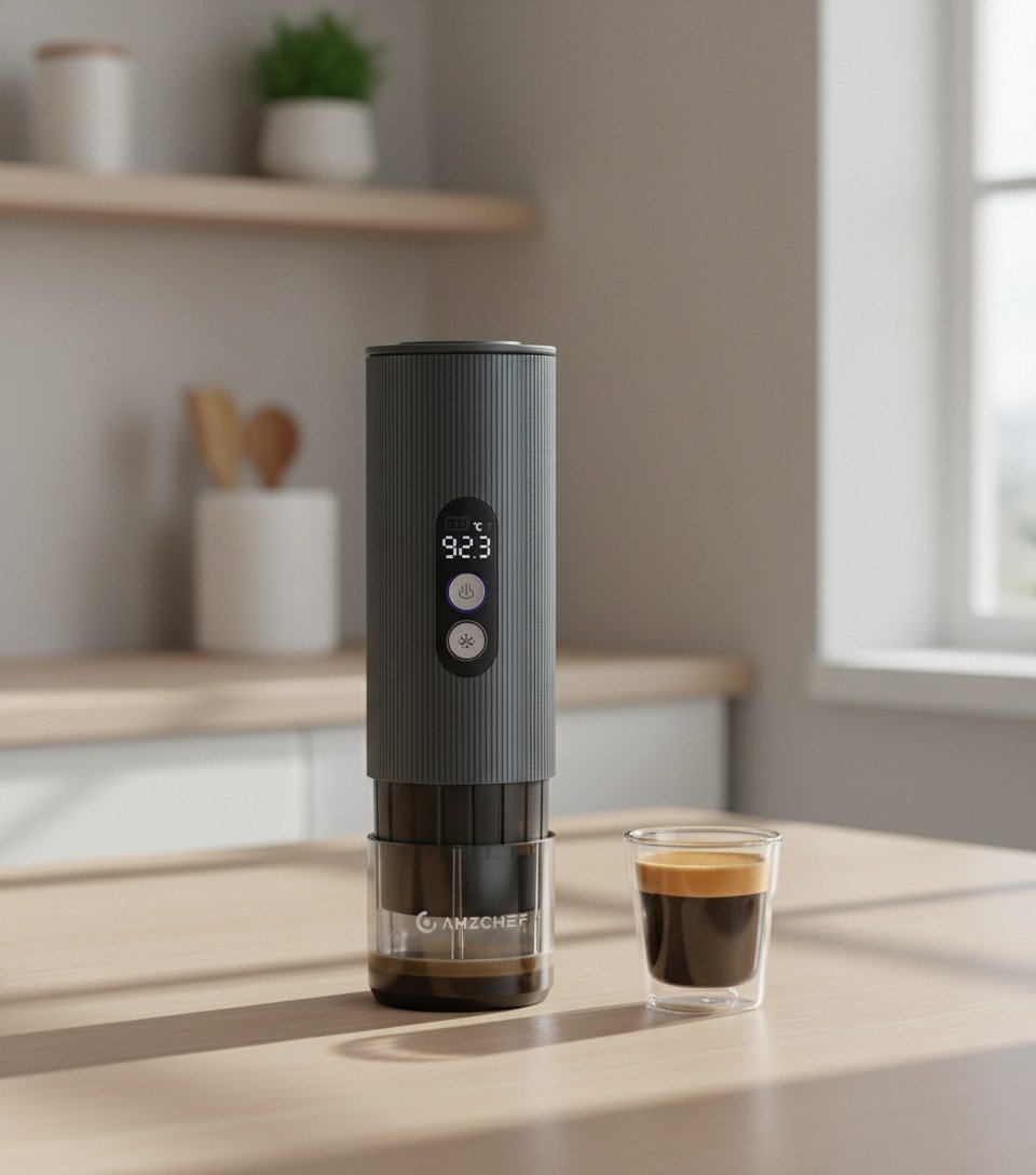 Unlike most portable coffee makers, the AMZCHEF doesn’t just warm water—it fully heats and brews under professional pressure. The sleek aluminum body feels durable yet premium, and the LCD interface makes it easy to use even when you’re half awake.