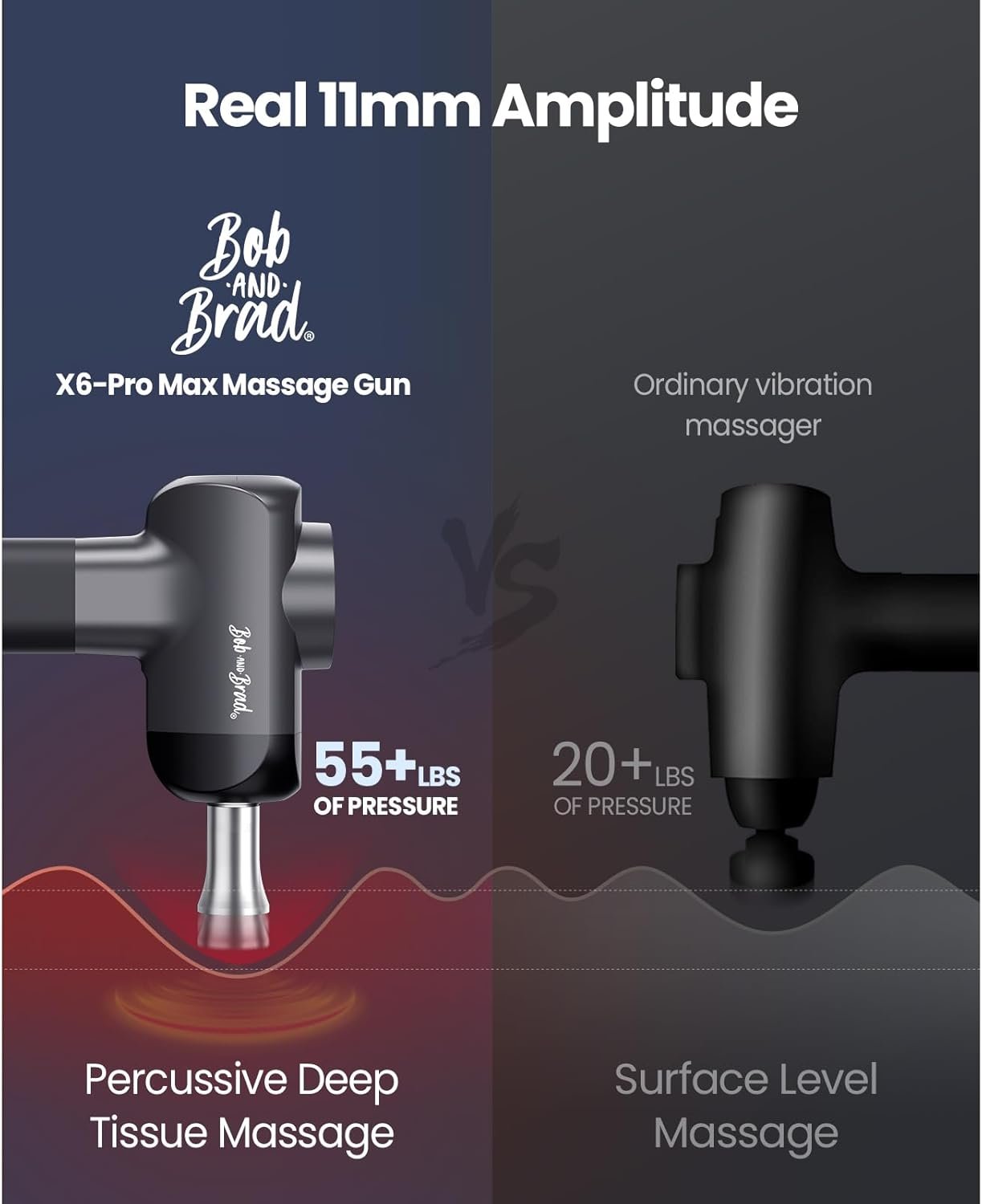 The X6 Pro Max delivers up to 55 lbs of pressure, reaching deep into muscles for real tension release — without stalling or losing speed. -