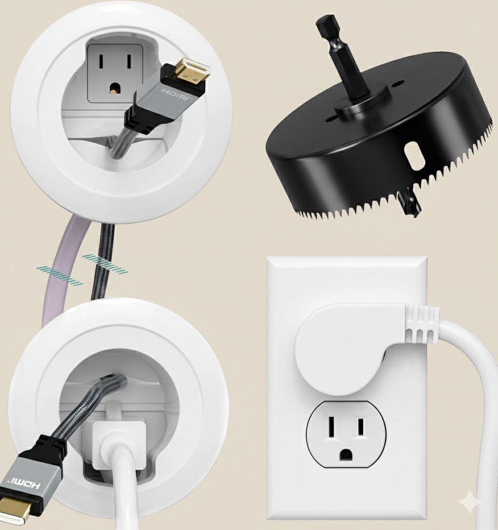 Installing this cable management kit made a huge difference in my media area. The hole saw made it simple to drill the two necessary openings, and routing cables through the wall was way easier than I expected. Once everything was plugged in, the result looked like something out of a showroom—no exposed cords at all.