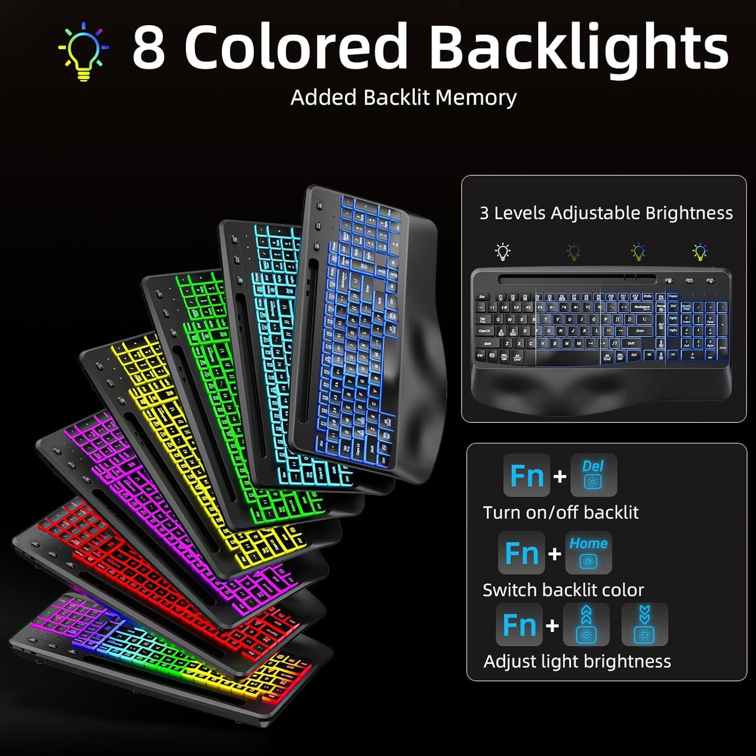 I initially bought this for the wrist rest, but the overall comfort really surprised me. The keys feel soft and responsive, and the silence of the mouse is a bonus—no more annoying clicking sounds distracting me or coworkers. I also love that the keyboard stays lit for night work, and since it’s rechargeable, I don’t have to worry about buying batteries.