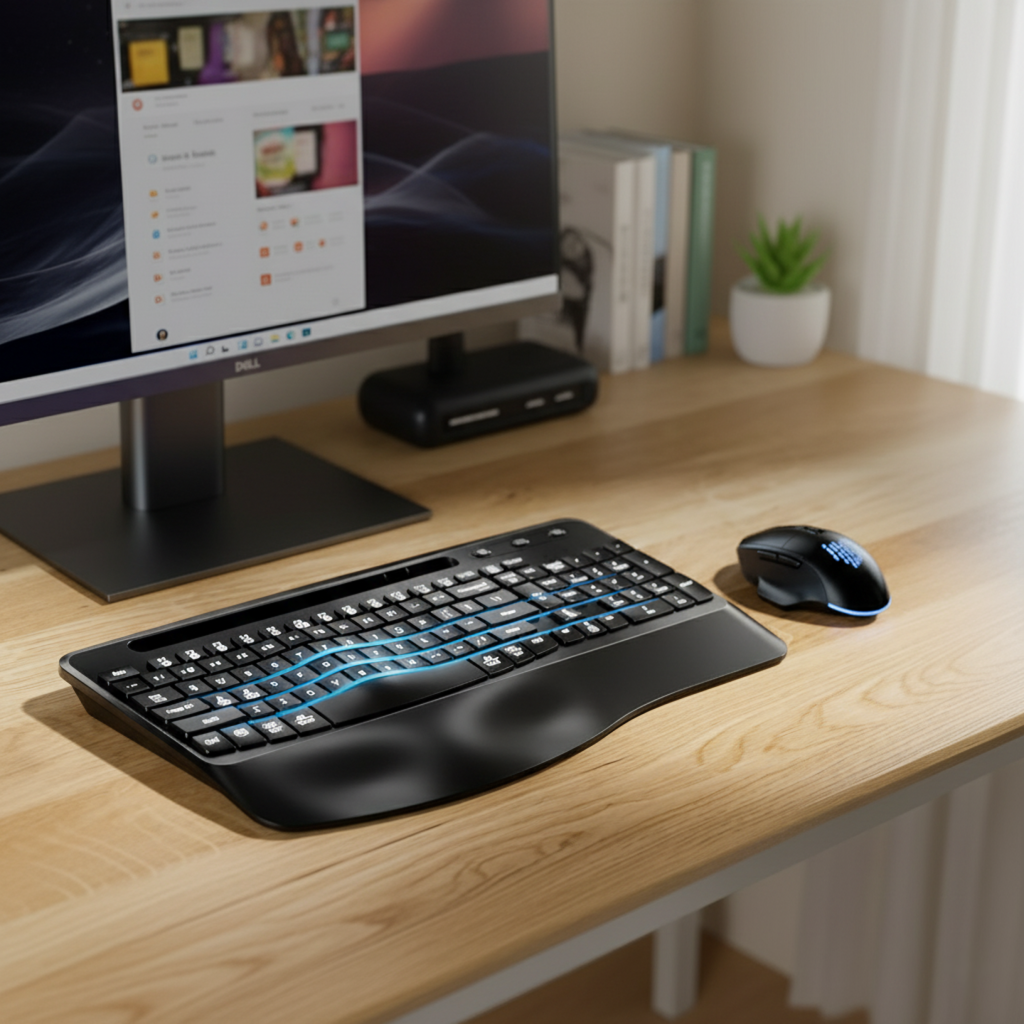 After struggling with wrist pain from long typing hours, I finally switched to this ergonomic keyboard and mouse combo and it genuinely made a difference. The wave-shaped keys feel natural under my fingers, and the built-in wrist rest keeps my hands supported so I’m not tensing up during work. It’s become one of my favorite productivity upgrades.