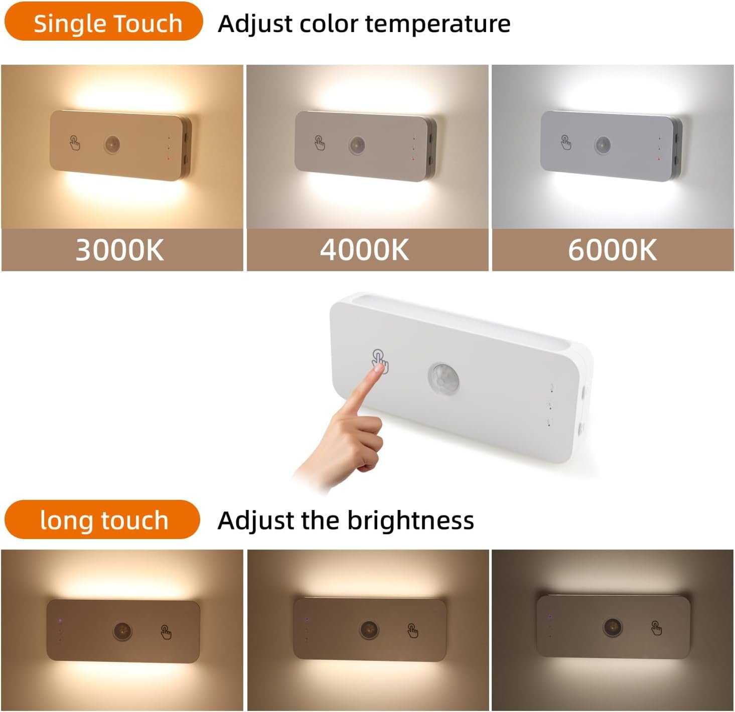 3 Color Temperatures – Warm white, natural white, or cool white. A single tap changes the color, and a long press adjusts the brightness to suit your mood.