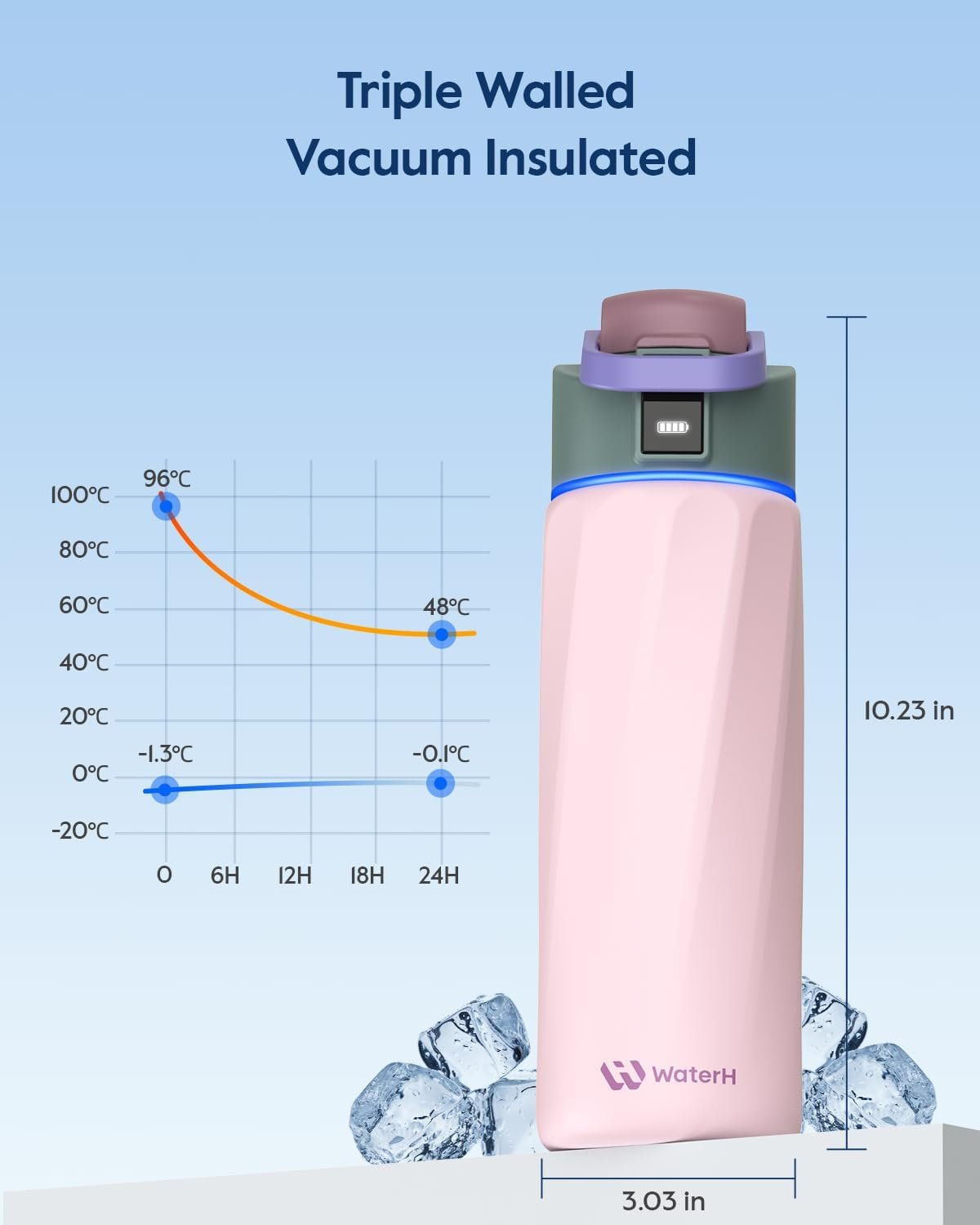 Built-in hydration reminder light ring + LED display